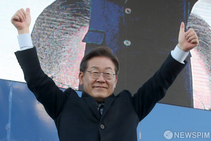 [서울=뉴스핌] 국회사진취재단 = 이재명 더불어민주당 대선 후보가 6일 오후 서울 은평구 응암역 인근에서 유세를 하며 지지를 호소하고 있다. 2022.03.06 photo@newspim.com
