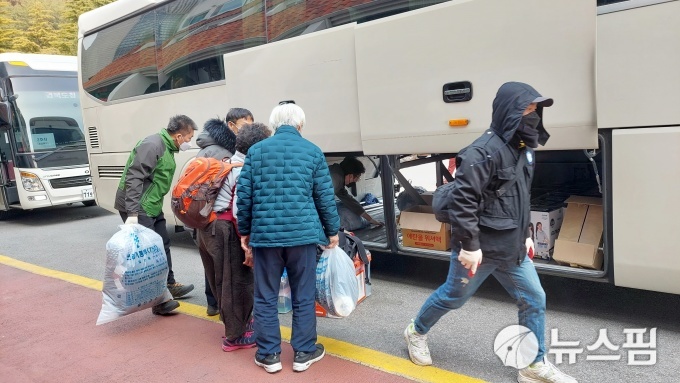 | [울진=뉴스핌] 남효선 기자 = 8일째 확산되고 있는 '울진산불'로 화마에 보금자리를 앗기고 맨 몸으로 긴급대피한 이재민들이 대피소에서 사용하던 개인물품을 담은 종량제쓰레기봉투 하나를 들고 임시거주시설로 입주하고 있다. 2022.03.11 nulcheon@newspim.com |