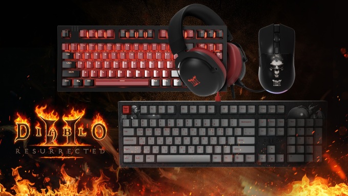 26일 업계에 따르면 공식 게이밍 기어는 블리자드 엔터테인먼트와 <디아블로 II: 레저렉션> 라이선스 계약을 맺은 구루컴퍼니가 국내 게이밍 기어 전문기업 앱코와 협업하여 제작됐다. 제품은 총 4종으로 독일 체리사의 정품 스위치를 사용한 RGB 체리 키보드 2종(풀사이즈/텐키리스), 경량형 무선 게이밍 마우스, 7.1 채널 RGB 게이밍 헤드셋으로 구성돼 있다.
