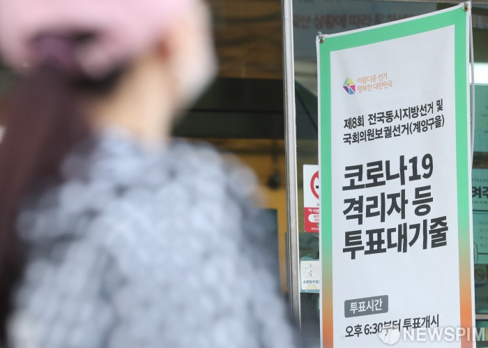[인천=뉴스핌] 김학선 기자 = 제8회 전국동시지방선거 사전투표 이틀째인 28일 오후 인천 계양구 계양2동 사전투표소 입구에 코로나19 격리자 투표 안내문이 설치되어 있다. 2022.05.28 yooksa@newspim.com