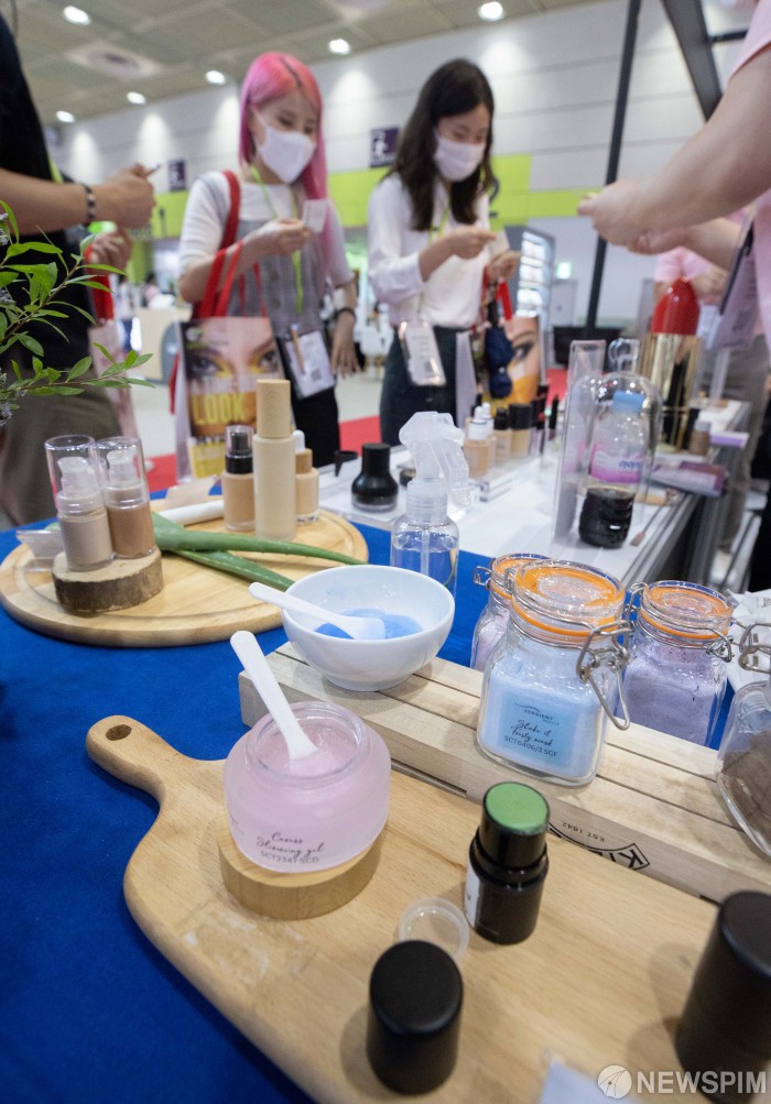 [서울=뉴스핌] 윤창빈 기자 = 13일 오후 서울 강남구 코엑스에서 열린 2022 인코스메틱스 코리아에서 관람객들이 화장품 원료를 살펴보고 있다. 인코스메틱스 코리아는 글로벌 원료 제조사들의 혁신적인 원료를 한 자리에서 확인하고 업계 트렌드를 파악할 수 있다. 2022.07.13 pangbin@newspim.com