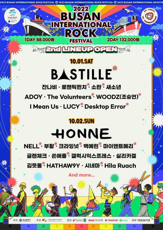 '바스틸(Bastille)'은 행사 첫날인 10월 1일 헤드라이너로 나서며, 2017년 이후 5년 만에 한국에서 무대를 갖는 것이라 국내 팬들의 많은 기대와 관심을 모을 것으로 예상된다.