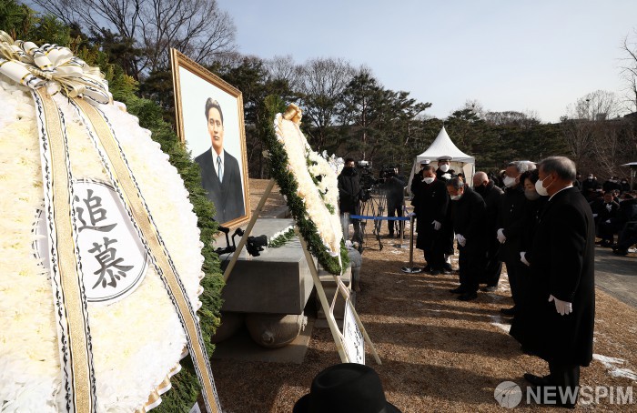 [서울=뉴스핌] 정일구 기자 = 19일 오전 서울 용산구 효창공원에서 열린 매헌 윤봉길 의사 순국 제90주기 추념식에서 참석자들이 헌화 및 분향을 하고 있다. 2022.12.19 mironj19@newspim.com