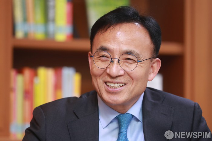 [서울=뉴스핌] 이형석 기자 = 김영익 서강대 교수가 9일 서울 여의도 국회 의원회관에서 '대한민국 경제, 어디로 가야 하나' 주제로 열린 2023 대한민국 경제 정책대담에서 홍성국 더불어민주당 의원과 대화를 나누고 있다. 2023.01.09 leehs@newspim.com