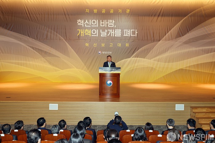 지방공공기관 혁신 보고대회,인사말하는 이상민 장관