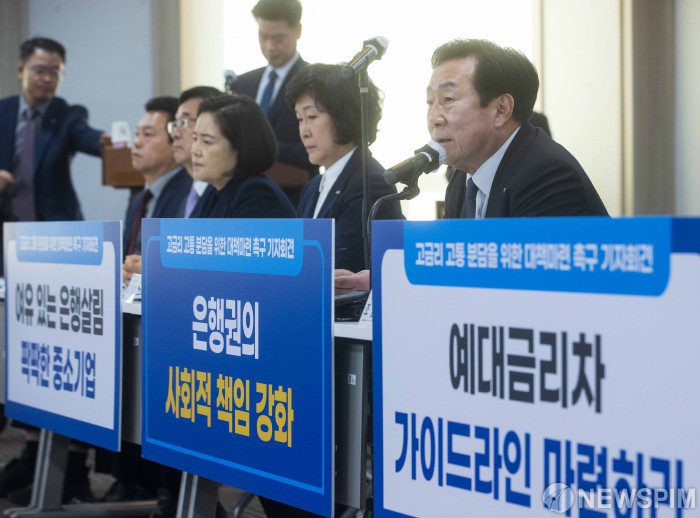 [서울=뉴스핌] 윤창빈 기자 = 김기문 중소기업중앙회 회장이 20일 오전 서울 여의도 중소기업중앙회에서 열린 고금리 고통 분담을 위한 대책마련 촉구 기자회견에서 모두발언을 하고 있다. 2023.02.19 pangbin@newspim.com
