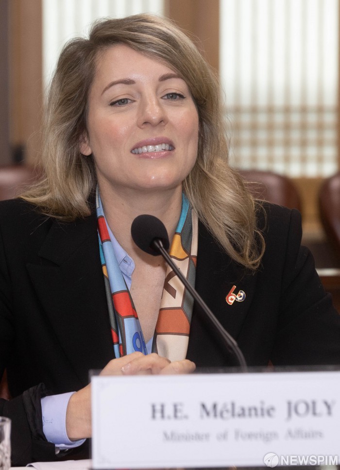 [서울=뉴스핌] 윤창빈 기자 = 멜라니 졸리 캐나다 외교장관이 15일 오전 서울 종로구 외교부에서 열린 한-캐 외교장관회담에서 모두발언을 하고 있다. 2023.04.15 pangbin@newspim.com