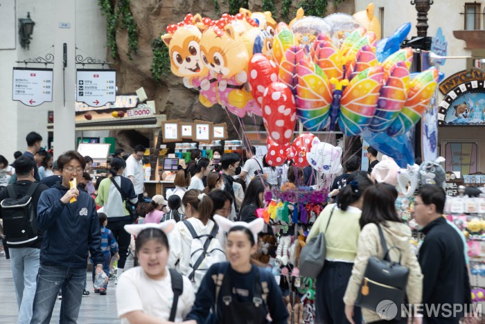 [서울=뉴스핌] 윤창빈 기자 = 어린이날을 맞은 5일 오후 서울 송파구 롯데월드 어드벤처를 찾은 시민들이 아이들과 함께 즐거운 시간을 보내고 있다. 2023.05.05 pangbin@newspim.com