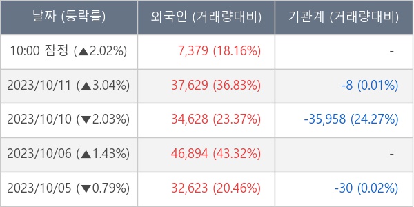 [표] 외국인ㆍ기관 순매매량 (단위 주)