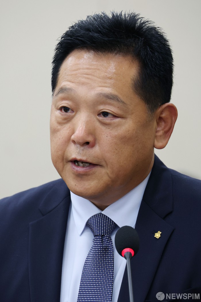 [서울=뉴스핌] 이형석 기자 = 박영진 더케이텍 대표가 12일 오후 서울 여의도 국회에서 열린 환경노동위원회의 고용노동부 국정감사에 증인으로 출석해 의원질의에 답하고 있다. 2023.10.12 leehs@newspim.com