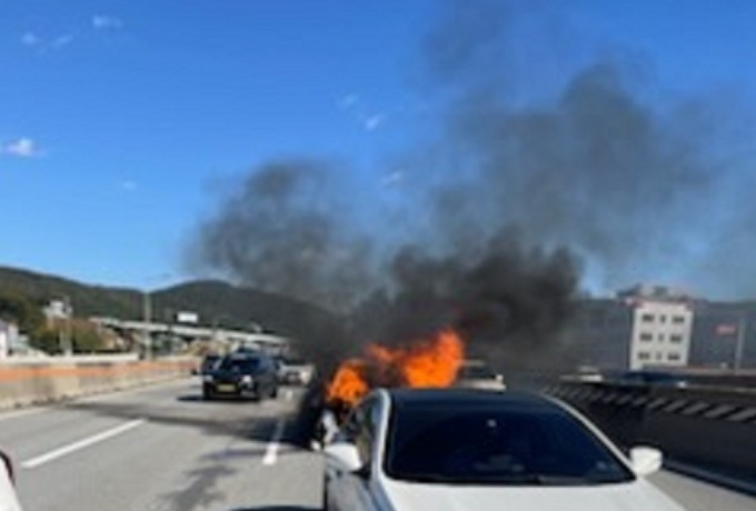 22일 소방당국 등에 따르면 전날 오후 2시9분쯤 SUV 차량이 주행 중 전방의 중형 승용차량과 접촉 추돌사고가 발생했고 사고 처리 중 SUV 차량 엔진룸에서 연기와 불꽃이 발현해 119에 신고했다.