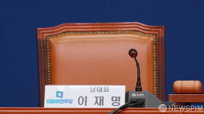 [서울=뉴스핌] 이형석 기자 = 3일 오전 서울 여의도 국회에서 더불어민주당 최고위원회의가 열리고 있다. 전일 부산 방문 도중 습격을 당해 병원에 입원 중인 이재명 대표의 자리가 비어져 있다. 2024.01.03 leehs@newspim.com