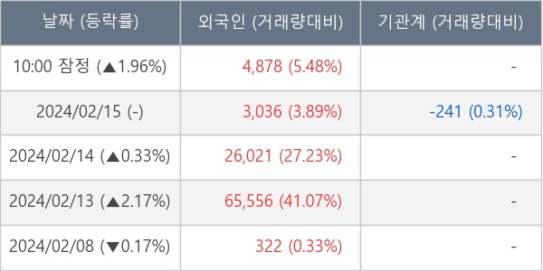 [표] 외국인ㆍ기관 순매매량 (단위 주)