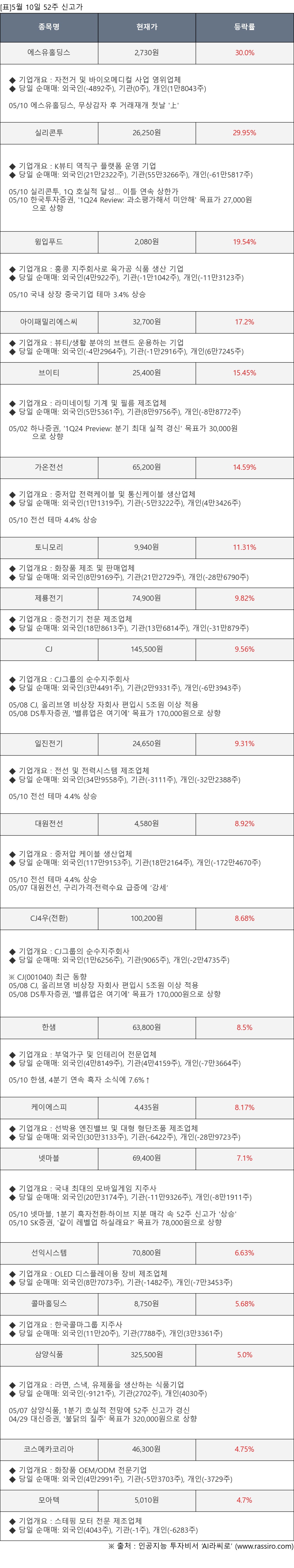 ※ 관련 종목: 에스유홀딩스, 실리콘투, 윙입푸드, 아이패밀리에스씨, 브이티, 가온전선, 토니모리, 제룡전기, CJ, 일진전기, 대원전선, CJ4우(전환), 한샘, 케이에스피, 넷마블, 선익시스템, 콜마홀딩스, 삼양식품, 코스메카코리아, 모아텍