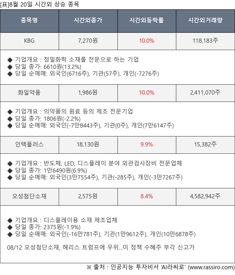 ※ 관련 종목: KBG, 화일약품, 인텍플러스, 오성첨단소재