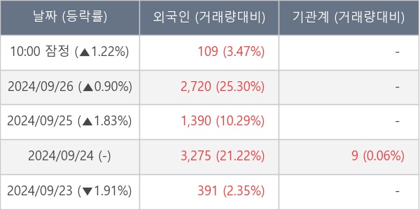 [표] 외국인ㆍ기관 순매매량 (단위 주)