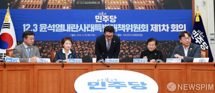 [서울=뉴스핌] 이형석 기자 = 김민석 더불어민주당 윤석열 내란 사태 특별위원장이 10일 오전 서울 여의도 국회에서 열린 12.3 윤석열내란사태특별대책위원회 제1차 회의에서 허리숙여 인사하고 있다. 2024.12.10 leehs@newspim.com