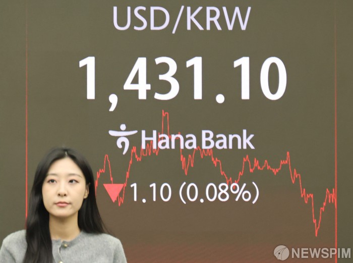 [서울=뉴스핌] 양윤모 기자 = 윤석열 대통령이 12일 오전 네 번째 대국민 담화를 발표한 가운데, 오후 3시 30분 코스피지수가 전 거래일 종가보다 39.61포인트(1.62%) 상승한 2,482.12로, 코스닥지수는 7.43포인트(1.10%) 상승한 683.35로 오후 거래를 마감했다. 서울 외환시장에서 달러/원 환율은 전 거래일보다 1.00원(-0.07%) 하락한 1,431.20원에 오후 거래를 마감한 가운데, 서울 중구 하나은행 딜링룸에서 직원들이 업무를 보고 있다. 2024.12.12 yym58@newspim.com
