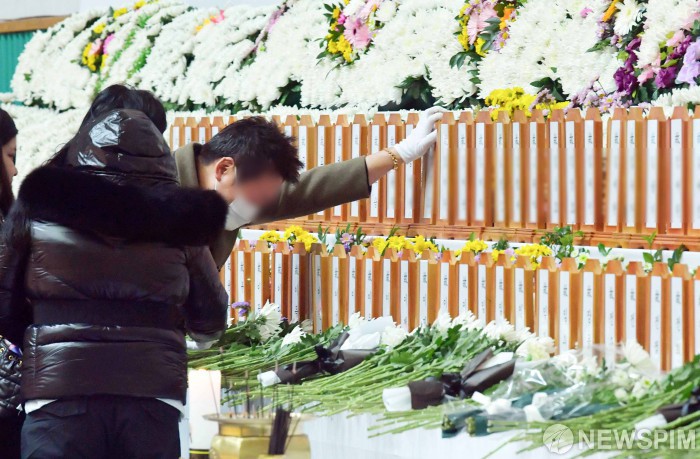 机上175名乘客和6名机组人员除2名乘务员获救,其余179人全部遇难。图为30日,民众自发前往位于全罗难道务安郡务安综合体育公园设置的灵堂,向遇难者表示哀悼。(完)