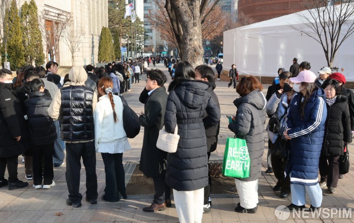 [서울=뉴스핌] 양윤모 기자 = 2025년 을사년(乙巳年) 첫날인 1일 오후 서울시청 본청사 정문 앞에 설치된 '제주항공 여객기 사고 희생자 합동분향소’를 찾은 시민들이 조문을 하고 있다. 서울시청 합동분향소는 정부가 결정한 국가애도기간인 1. 4.(토)까지 매일 08시부터 22시까지 운영되며, 운영시간 이후에도 자율적으로 조문할 수 있다. 2025.01.01 yym58@newspim.com