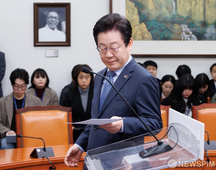 [서울=뉴스핌] 윤창빈 기자 = 이재명 더불어민주당 대표가 23일 오전 서울 여의도 국회에서 열린 신년 기자회견에 참석하고 있다. 2025.01.23 pangbin@newspim.com