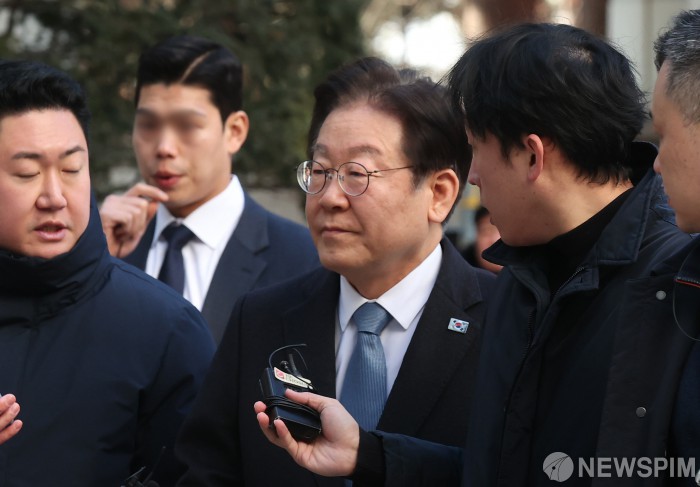 [서울=뉴스핌] 이호형 기자 = 이재명 더불어민주당 대표가 18일 오전 서울 서초구 서울중앙지방법원에서 열린 ‘대장동 배임 및 성남FC 뇌물 등‘ 특정범죄가중처벌등에관한법률위반 혐의 1심 속행 공판에 출석 하고 있다. 2025.02.18 leemario@newspim.com