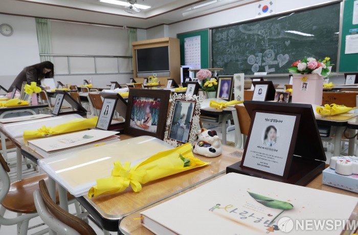 [안산=뉴스핌] 김학선 기자 = 세월호 참사 11주기인 16일 경기도 안산시 4.16생명안전교육원에 마련된 단원고 4.16 기억교실에 추모객들의 발길이 이어지고 있다. 2025.04.16 yooksa@newspim.com