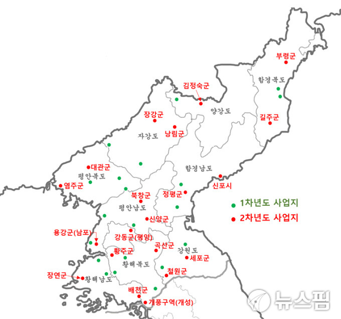 보고서는 "올 2차년도 사업지는 기존 농축수산업 분야 건설 사업에서 성과를 거둔 지역을 포함하면서도, 1차년도보다 외곽 지역으로 확장된 분포를 보인다"며 구체적으로 "평양 동부 외곽에 위치한 강동군이 '지방발전 20X10 정책' 사업지로 포함된 점이 주목된다"고 밝혔다.
