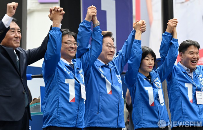 [대구=뉴스핌] 정일구 기자 = 이재명 더불어민주당 대통령 후보가 13일 대구 중구 동성로에 도착해 지지자들에게 인사하고 있다. 2025.05.13 mironj19@newspim.com