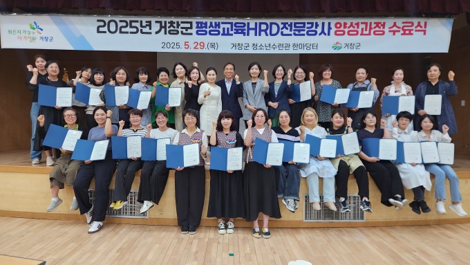 [거창=뉴스핌] 정철윤 기자 = 경남 거창군은 전날 거창군 청소년수련관에서 평생학습 강사 34명이 참여한 가운데 평생교육HRD전문강사 양성과정 수료식을 개최했다고 30일 밝혔다.