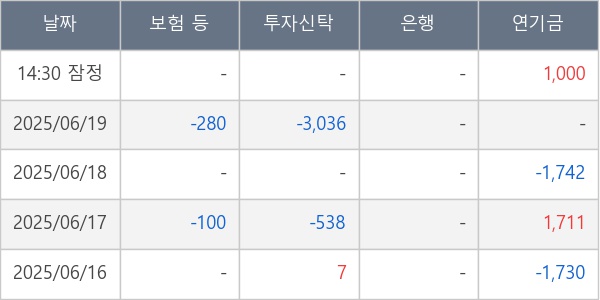 ※ 사모펀드 등 일부 기관의 순매매량은 표시되지 않음