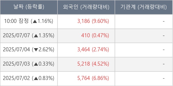 [표] 외국인ㆍ기관 순매매량 (단위 주)