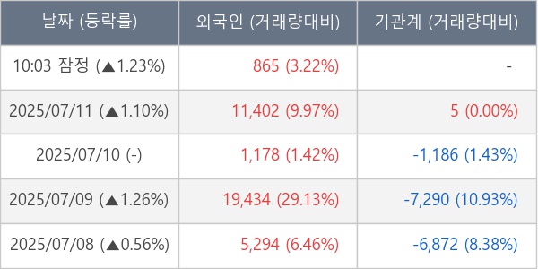 [표] 외국인ㆍ기관 순매매량 (단위 주)