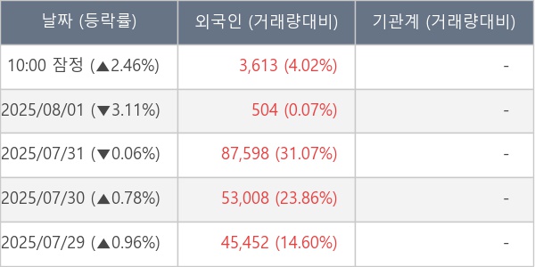[표] 외국인ㆍ기관 순매매량 (단위 주)