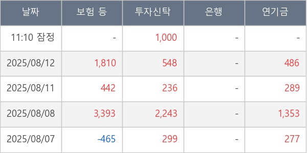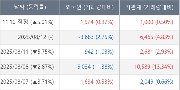 ※ 사모펀드 등 일부 기관의 순매매량은 표시되지 않음