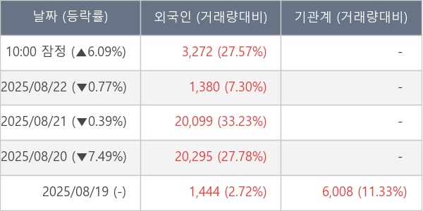 [표] 외국인ㆍ기관 순매매량 (단위 주)
