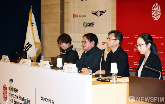 [서울=뉴스핌] 최지환 기자 = 박광수 부산국제영화제 이사장이 26일 오후 서울 중구 대한상공회의소에서 열린 제30회 부산국제영화제 개최 기자회견에서 발언하고 있다. 다음 달 17일부터 10일 간 열리는 이번 영화제에서는 64개국 241편이 공식 상영작으로 선정됐다. 연계 프로그램인 커뮤니티비프 상영작까지 포함하면 총 324편이 상영된다. 왼쪽부터 김영덕 마켓위원장, 박광수 이사장, 정한석 집행위원장, 박가언 수석프로그래머. 2025.08.26 choipix16@newspim.com