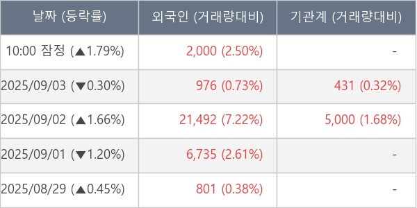 [표] 외국인ㆍ기관 순매매량 (단위 주)