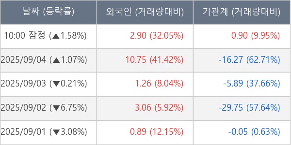 ※ 사모펀드 등 일부 기관의 순매매량은 표시되지 않음