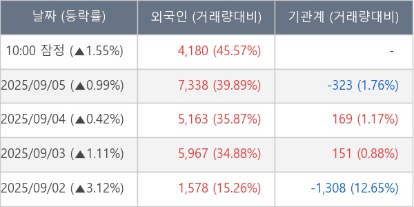 [표] 외국인ㆍ기관 순매매량 (단위 주)