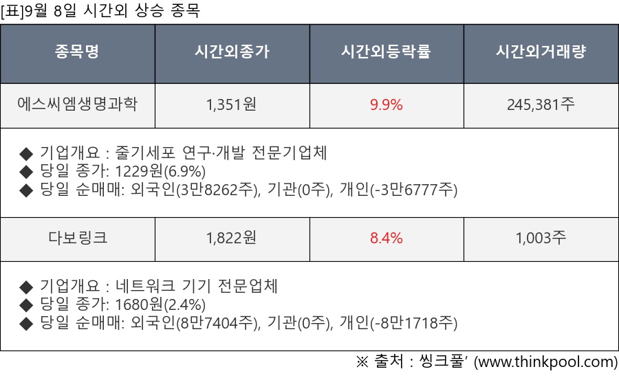 ※ 관련 종목: 에스씨엠생명과학, 다보링크