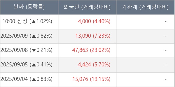[표] 외국인ㆍ기관 순매매량 (단위 주)