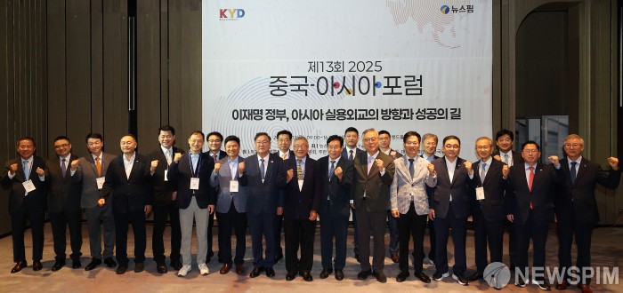 [서울=뉴스핌] 정일구 기자 = 민병복 뉴스핌 회장과 김태년 한중의원연맹회장 등 내빈들이 12일 오전 서울 여의도 페어몬트호텔 그랜드볼룸에서 종합뉴스통신사 뉴스핌 주최로 열린 제13회 2025 중국·아시아 포럼에서 기념촬영을 하고 있다. '이재명 정부, 아시아 실용외교의 방향과 성공의 길'을 주제로 열린 이번 포럼은 중국, 일본, 인도, 베트남 등 아시아 국가들과의 경제·문화 협력 상황을 점검하고 발전 방안을 찾기 위해 마련됐다. 2025.09.12 mironj19@newspim.com