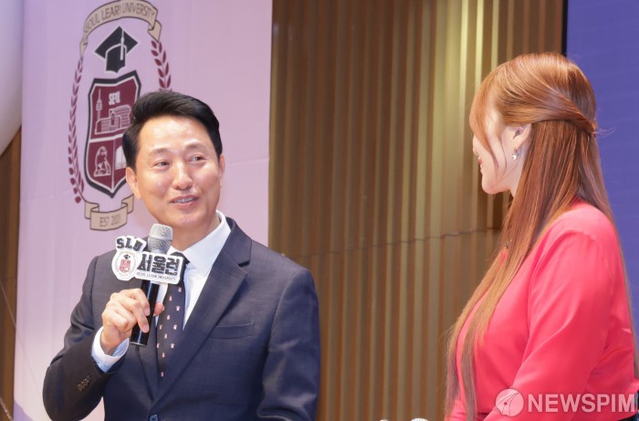 [서울=뉴스핌] 양윤모 기자 = 오세훈 서울시장이 16일 오후 서울시청 본관 8층 다목적홀에서 개최된 '서울런 4주년 기념식' 토크쇼에 참석하고 있다. 2025.09.16 yym58@newspim.com
