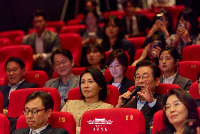 이 대통령 부부는 영화 관람 후 감독·배우들과 '관객과의 대화'에 참여했다.