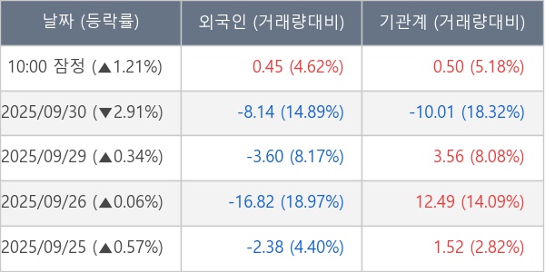 [표] 외국인ㆍ기관 순매매량 (단위 만주)