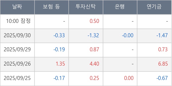 ※ 장중 매매동향은 잠정치이므로 실제 매매동향과 차이가 발생할수 있음
