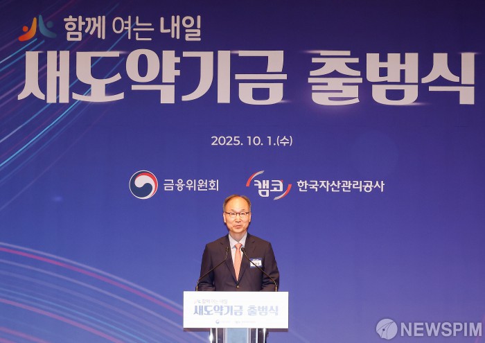 [서울=뉴스핌] 류기찬 기자 = 양혁승 새도약기금 대표이사가 1일 오전 서울 중구 한국프레스센터에서 열린 ‘새도약기금 출범식’에서 인사말을 하고 있다. 2025.10.01 ryuchan0925@newspim.com