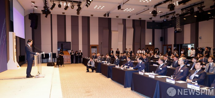 [서울=뉴스핌] 류기찬 기자 = 이억원 금융위원장이 1일 오전 서울 중구 한국프레스센터에서 열린 ‘새도약기금 출범식’에서 축사를 하고 있다. 2025.10.01 ryuchan0925@newspim.com