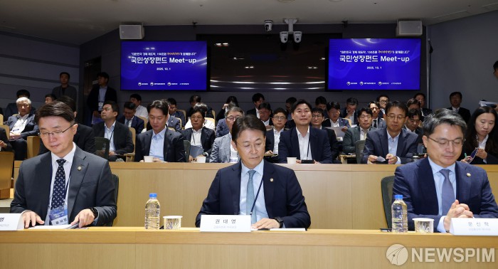 [서울=뉴스핌] 정일구 기자 = 류제명 과학기술정보통신부 제2차관(왼쪽부터), 권대영 금융위원회 부위원장, 문신학 산업통상부 제1차관이 1일 오전 서울 영등포구 한국산업은행에서 열린 국민성장펀드 성공을 위한 정부-산업계-금융계 간담회에 참석해 있다. 2025.10.01 mironj19@newspim.com
